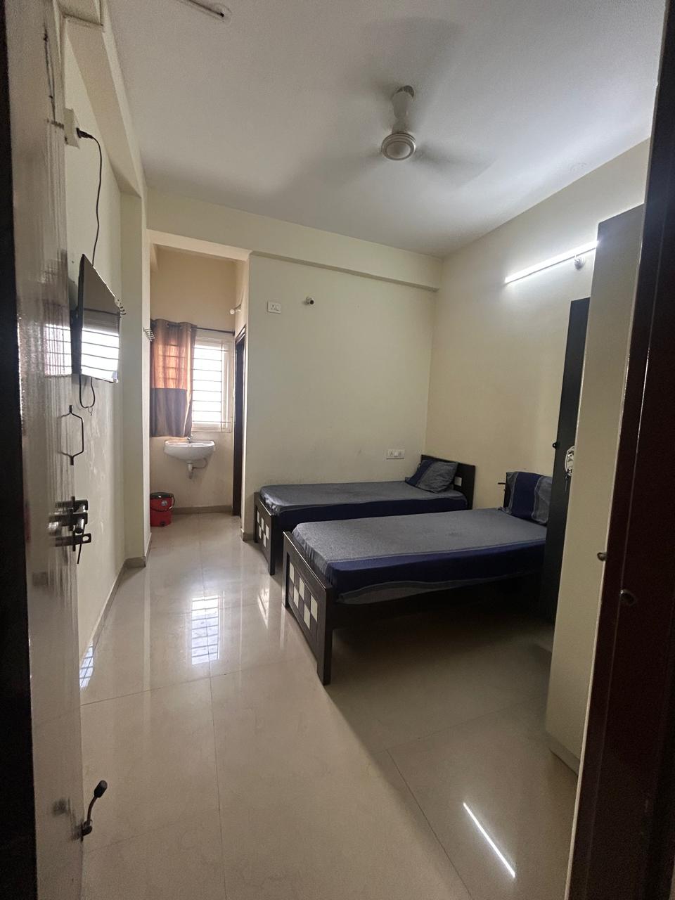 Gachibowli Circle (PG-5) Gachibowli Circle (PG-5) Rooms 1. Single Occupancy Room 🛏️ Description:A private room for one person, offering maximum privacy and comfort.Ideal For: Working professionals and students who value solitude and personal space.Features:Single bed with mattress & bedsheetPersonal wardrobeAttached/shared bathroomHigh-speed Wi-FiDaily housekeeping24/7 CCTV SurveillanceThree-time mealPrice: ₹22000 2. Double Occupancy Room 🛏️🛏️ Description:Shared by two people — a balance of privacy and affordability.Ideal For:Working professionals and students who value solitude and personal space.Features:Two single beds with a mattress & bedsheetPersonal wardrobeAttached/shared bathroomHigh-speed Wi-FiDaily housekeeping24/7 security & CCTVThree-time mealA/C Room Price: ₹13500NON-A/C Room Price: ₹12000 3. Triple Occupancy Room 🛏️🛏️🛏️ Description:Room shared among three people — budget-friendly option.Ideal For:Students or young professionals seeking economical living.Features:Three single beds with a mattress & bedsheetPersonal wardrobeAttached/shared bathroomWi-FiDaily housekeeping24/7 securityThree-time mealA/C Room Price: ₹10500NON-A/C Room Price: ₹9000 4. Four Occupancy Room 🛏️🛏️🛏️🛏️ Description:Room shared among three people — budget-friendly option.Ideal For:Students or young professionals seeking economical living.Features:Four single beds with a mattress & bedsheetPersonal wardrobeAttached/shared bathroomWi-FiDaily housekeeping24/7 securityThree-time mealPrice: ₹8000 Contact Us Let’s Connect—How Can We Help? We’re here to assist you with any inquiries or bookings. Please reach out through any of the following methods: +91 95428 88845 / +91 93938 88845 vathsalyahospitality19@gmail.com P.No -19S.N0 -10 & 17, Backside Maharaja Hotel, Rahmath Gulshan Colony, Hyderabad. Please enable JavaScript in your browser to complete this form.Please enable JavaScript in your browser to complete this form.Name *FirstLastEmail * Mobile Message Number Mobile Number *MessageSubmit Location Gallery TWO SHARINGTHREE SHARINGFOUR SHARINGDINING TABLESINGLE ROOM