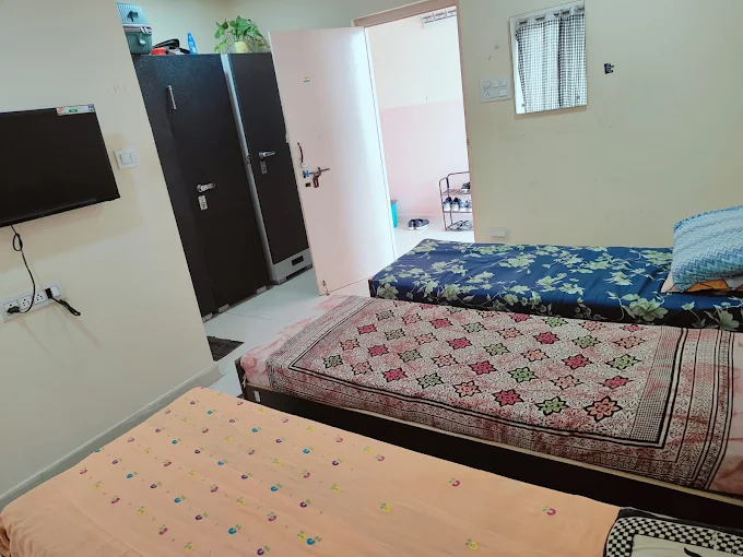 Madhapur (PG-2) Madhapur (PG-2) Rooms 2. Double Occupancy Room 🛏️🛏️ Description:Shared by two people — a balance of privacy and affordability.Ideal For:Working professionals and students who value solitude and personal space.Features:Two single beds with a mattress & bedsheetPersonal wardrobeAttached/shared bathroomHigh-speed Wi-FiDaily housekeeping24/7 security & CCTVThree-time mealPrice: ₹11500 3. Triple Occupancy Room 🛏️🛏️🛏️ Description:Room shared among three people — budget-friendly option.Ideal For:Students or young professionals seeking economical living.Features:Three single beds with a mattress & bedsheetPersonal wardrobeAttached/shared bathroomWi-FiDaily housekeeping24/7 securityThree-time mealPrice: ₹9000 4. Four Occupancy Room 🛏️🛏️🛏️🛏️ Description:Room shared among three people — budget-friendly option.Ideal For:Students or young professionals seeking economical living.Features:Four single beds with a mattress & bedsheetPersonal wardrobeAttached/shared bathroomWi-FiDaily housekeeping24/7 securityThree-time mealPrice: ₹8000 Contact Us Let’s Connect—How Can We Help? We’re here to assist you with any inquiries or bookings. Please reach out through any of the following methods: +91 90108 88845 / +91 93938 88845 vathsalyahospitality19@gmail.com 1-98/90/16/B Vikram Hospital Lane, Kavuri Hills, Madhapur (Metro Pillar no: 1729), Hyderabad. Please enable JavaScript in your browser to complete this form.Please enable JavaScript in your browser to complete this form.Name *FirstLast Name Number Email Email *Mobile Number *MessageSubmit Gallery FOUR SHARINGTHREE BEDTWO BEDDINING 2DINING 3DININGDININGELEVATION